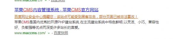 目前maccms官方被百度網址安全中心提醒您:該站點可能受到黑客攻擊,部分頁面已被非法篡改! 蘋果官方網站因為特殊原因已經停止訪問,該內容被禁止訪問,但是升級補丁更新的網址還是可以打開的。