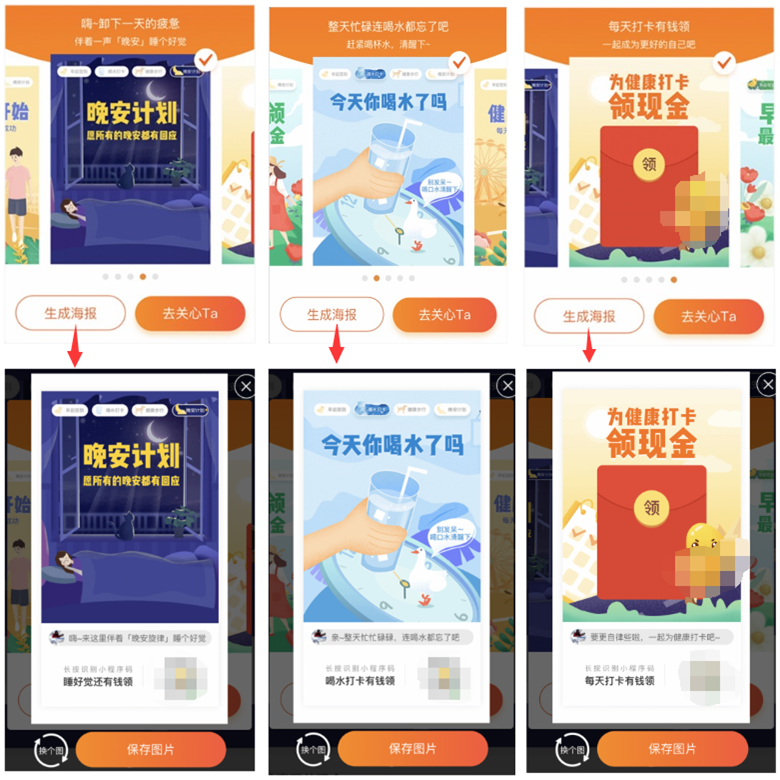 以下分享朋友圈功能樣式(生成海報→(換個圖)保存圖片)供參考,裂變效果非常好。