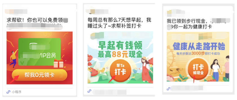 會發現,在分享鏈接中,文案傳達朋友友情幫點意思的回流率更高。因此,可以在分享圖文中適當加上類似【幫我點贊/幫TA砍一刀】之類的按鈕。