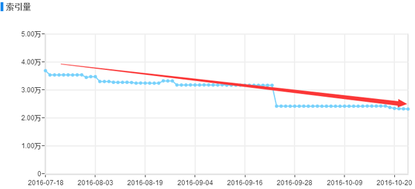 如上圖小編是今年三月份開(kāi)始接手的這個(gè)網(wǎng)站項(xiàng)目,當(dāng)時(shí)并木有通過(guò)逆向思維去解決網(wǎng)站存在的收錄問(wèn)題,只是經(jīng)驗(yàn)性的簡(jiǎn)單分析了一下網(wǎng)站的日志,在站長(zhǎng)后臺(tái)增加了sitemap推送和在服務(wù)器上部署了主動(dòng)推送功能,短時(shí)間內(nèi)的確效果明顯,該頻道的頁(yè)面收錄呈現(xiàn)良好的上升趨勢(shì),可是通過(guò)圖表可以看出,收錄量在達(dá)到6月份的時(shí)候一直到7月份中旬沒(méi)有進(jìn)行任何明顯的變化,從7月中旬之后小編當(dāng)時(shí)就有一種危機(jī)感,職業(yè)上的直覺(jué)告訴我,接下來(lái)一段時(shí)間該頻道的收錄會(huì)呈現(xiàn)大幅下降的趨勢(shì),結(jié)果果不其然,如下圖: