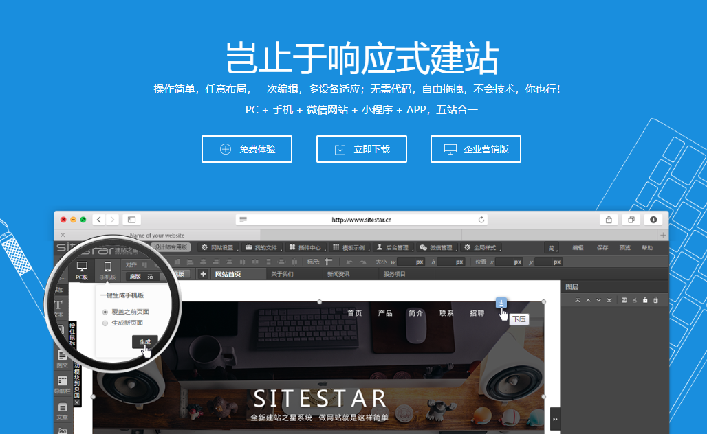 羅馬城不是一天就建成的,企業(yè)建站也不是幾下就成型的,但是在智能建站的平臺上,不論是建站新手還是網(wǎng)頁設(shè)計(jì)師可以發(fā)揮得淋漓至盡,企業(yè)建站不再難!