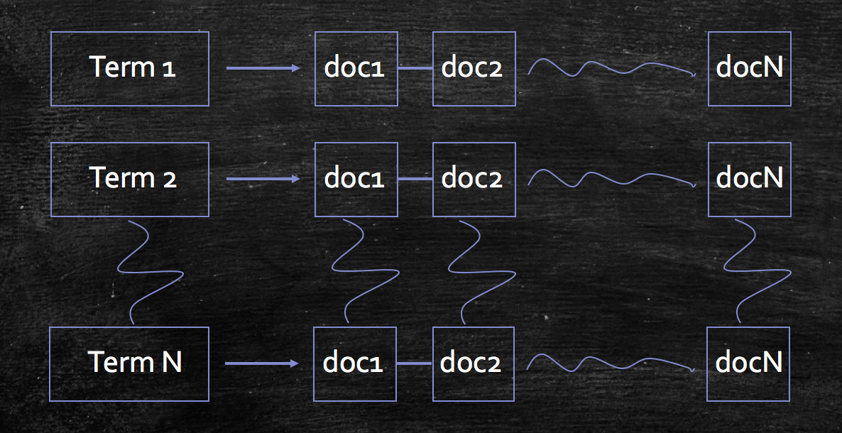 Step2:terms在倒排索引中的詞項列表中查找對應的terms的結果列表;