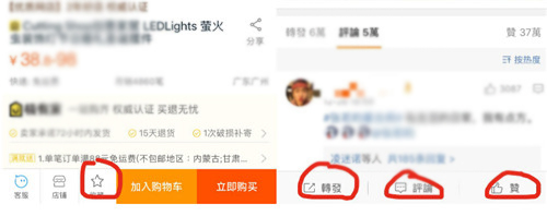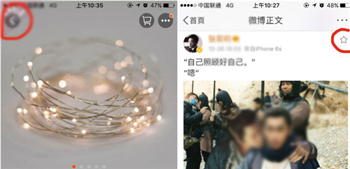 如上圖微博APP和手機淘寶APP都是用星星圖標來表示收藏功能。