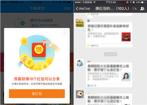 比如用戶在使用外賣APP叫外賣之后,會有拆分紅包的大圖標出現(xiàn)。這些外賣APP通過不斷對用戶重復(fù)提示,刺激用戶每次做出相應(yīng)的行為,慢慢就培養(yǎng)了用戶往社交平臺分享紅包的習慣。我就有一個專門發(fā)放和領(lǐng)取外賣紅包的微信群,這樣子就不會對其他社群造成騷擾,也讓外賣紅包不再尷尬,有了用武之地,這是題外話了。