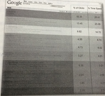 成都網(wǎng)站建設(shè)--創(chuàng)新互聯(lián)小編在列個(gè)2006年10月,康奈爾大學(xué)做了更進(jìn)步的實(shí)驗(yàn)和統(tǒng)計(jì),記錄397次實(shí)驗(yàn)對(duì)像(搜索用戶)對(duì)搜索結(jié)果的關(guān)注時(shí)間及點(diǎn)擊分布,實(shí)驗(yàn)數(shù)據(jù)成都網(wǎng)站建設(shè)--創(chuàng)新互聯(lián)小編發(fā)張圖如下圖:
