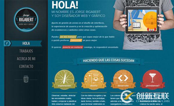 每一個餐飲網站都應該創建一個導航餐飲的菜單。單頁的布局往往是最靈活的。網站不需要大量的下拉菜單或滑動連接板。Jorge Rigabert的網站是一個很好的例子。該網站被分割成彩色的部分,其中包括不同的信息。在滾動頁面的時候,左邊的導航欄和你一起滾動。可悲的是,我無法讀西班牙語,但鏈接文本本身脫穎而出,大膽和豐富多彩。懸停和選定的鏈接效果也引人注目。垂直導航并不總是需要浮華的,但它肯定不會傷害到你的設計。