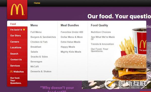 并不是每一個網站都可以作為一個單一的頁面布局。幸運的是,有很多其他的方法來構造一個垂直導航。有時設計者仍然會選擇修改菜單在用戶旁邊滾動。這是一個很受歡迎的選擇,你會發現這種效果也經常使用水平導航中。但在許多情況下是簡單的垂直導航放在頁面頂部。例如麥當勞的網頁,它使用一個紅色的垂直導航匹配公司的標志。