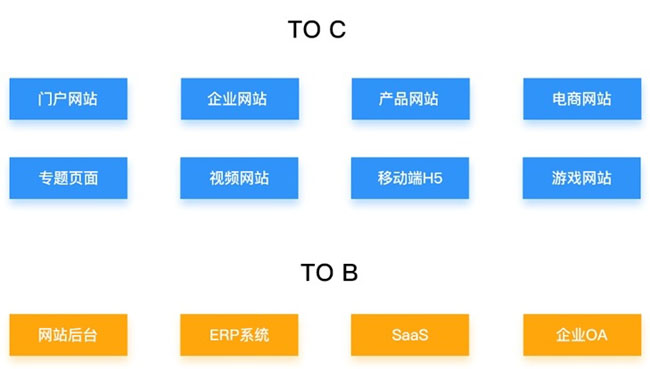 網站的分類按對象來劃分可以分為 To C端和 To B端兩種。To C端就是面向用戶和消費者,例如門戶網站、企業網站、產品網站、電商網站、游戲網站、專題頁面、視頻網站、移動端H5 等,均是面向用戶和消費者的產品。由于是面向用戶和消費者,所以設計上一定要可以吸引人,并且以用戶為中心考慮體驗設計。而 To B端作為一個需求量很大的類別,其實往往被設計師所忽視。什么是 To B端項目呢?比如電商網站供貨商的后臺、Dashboard、企業級OA、網站統計后臺等這些面向商家和專業人士的網站就是 To B 類網站項目了。這些項目的要求和 To C端網站的要求大相徑庭:To B 類項目最重要的是效率而不是體驗,因為說白了我們在設計使用者工作的工具,我們在設計時必須首先要保證操作者可以高效地完成他們所需要完成的工作。那么讓我們來了解一下網站的不同門類吧。