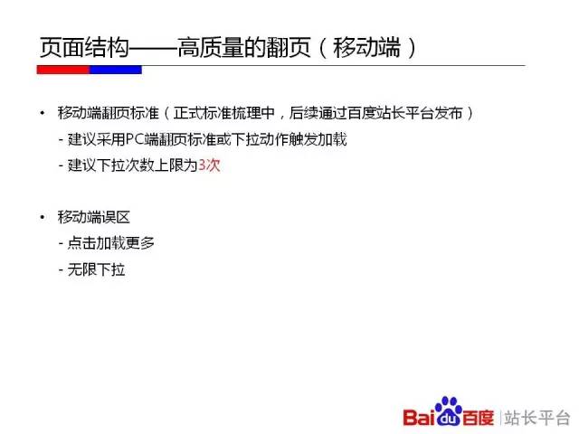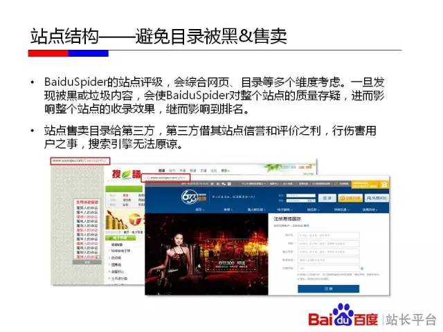 據(jù)百度官方表示,翻頁、索引、死鏈等都會影響到BaiduSpider對網(wǎng)頁的評價。那么,在百度Spider 2.0升級至3.0后,我們該如何建設(shè)對BaiduSpider友好的站點(diǎn)呢?針對這個問題,百度官方發(fā)布了一組PPT,分別從站點(diǎn)結(jié)構(gòu)、頁面結(jié)構(gòu)、以及抓取限制等方面講述了友好站點(diǎn)的“建設(shè)法則”。