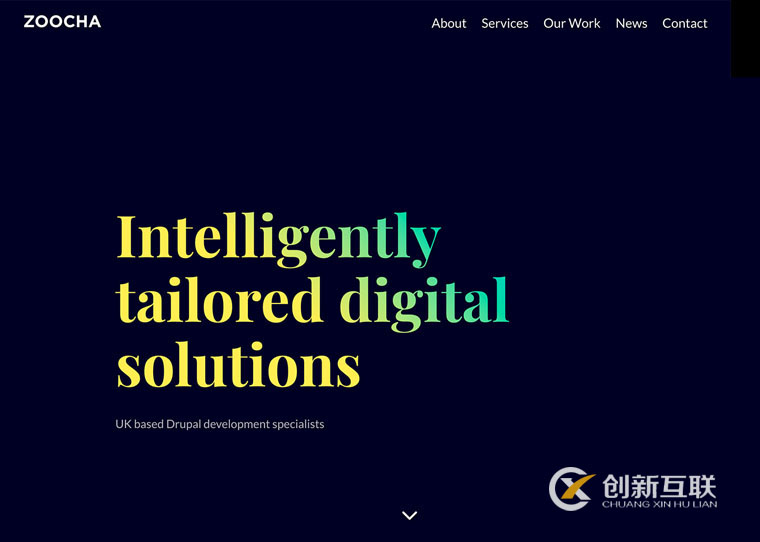 在Zoocha中,文本是主要的視覺元素。 設(shè)計(jì)師將使用從黃色到綠色的漸變填充文本。 在黑色背景下,它非常醒目。
