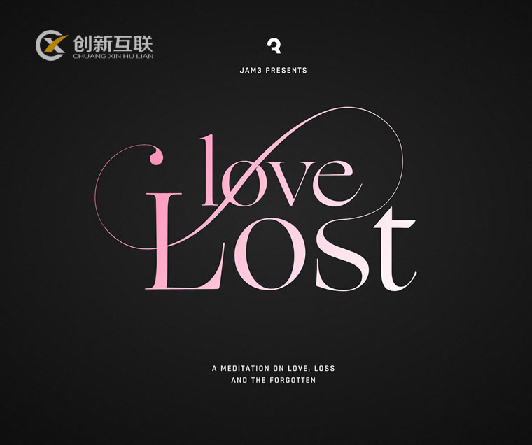 愛情迷失此頁面還使用了黑色背景,字體選擇了優(yōu)雅的襯線字體,這與主題非常一致,并且哪種漸變顏色是白色到粉色漸變,視覺上非常合適的設(shè)計(jì)