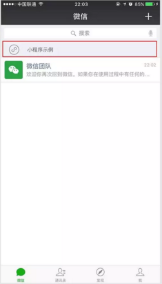 五、歷史記錄。當(dāng)你使用過某個小程序后,在微信客戶端的“發(fā)現(xiàn)-小程序”里的列表,就可以看到這個小程序,想要再次使用它時,通過列表中的歷史記錄就可以進(jìn)入。 在“發(fā)現(xiàn)-小程序”中,也可以通過搜索進(jìn)入小程序。