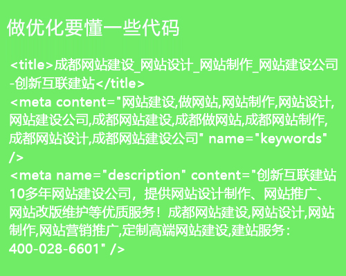 做網站優(yōu)化到底要不要懂得代碼?優(yōu)化是不是一項技術,有些人認為做優(yōu)化并不需要懂什么技術,有些人卻認為做優(yōu)化是要懂一些技術的,那我們說說做優(yōu)化是不是要懂得一些代碼呢?