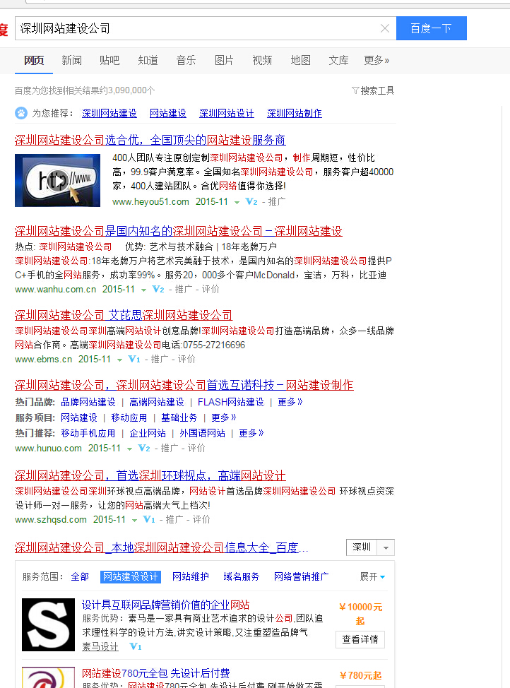 1、競(jìng)爭(zhēng)激烈。在百度中搜索“深圳風(fēng)站建設(shè)公司”相關(guān)的數(shù)據(jù)就達(dá)到300萬(wàn)條,而搜索首頁(yè)前半屏的左右都被百度推廣的廣告位占據(jù),可見(jiàn)競(jìng)爭(zhēng)的激烈程度。在這樣的市場(chǎng)競(jìng)爭(zhēng)下,廣告費(fèi)用也大幅提高。
