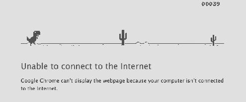 Chrome Web Game,很不錯的錯誤頁面設計。當頁面不能訪問失敗時,出現了一個類似于馬里奧的網頁小游戲,用戶點擊空格鍵,就可以前進跳躍,跳過一個個障礙物有沒有感覺很爽呢?用戶對訪問失敗感覺很不爽的,此種做法有效的做到了分心,消除不爽。