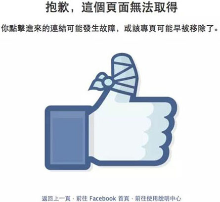 它看起來像Facebook的404頁面似乎沒有很多關(guān)注。 這種設(shè)計來自它自己的“喜歡”圖標(biāo)。