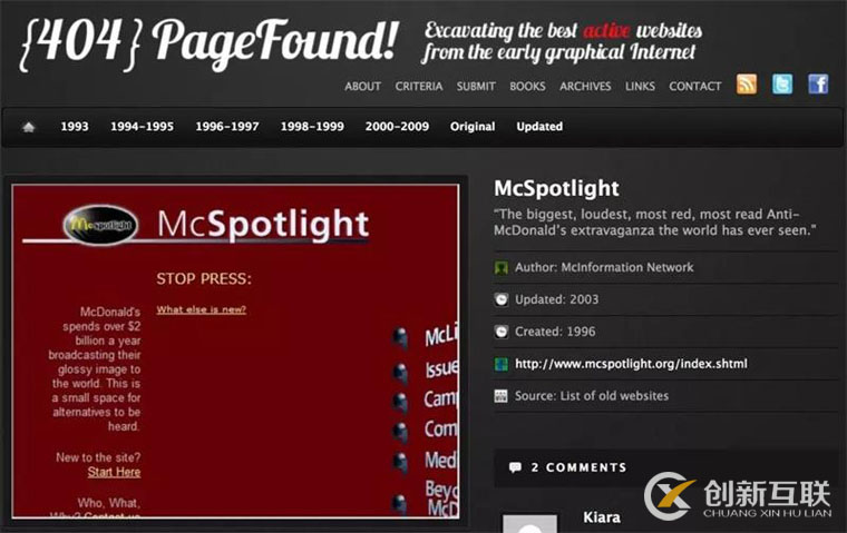 在這里你可以找到從1993年到2009年不同網(wǎng)站的歷史版本。它是一個小型的互聯(lián)網(wǎng)歷史博物館。