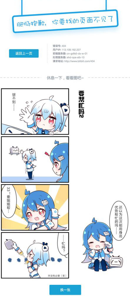 A 站的 404 頁面有著濃烈的二次元風(fēng)格,前段時間 A 站無法訪問的幾天相信很多人都看過略帶憂傷的 AC 娘。