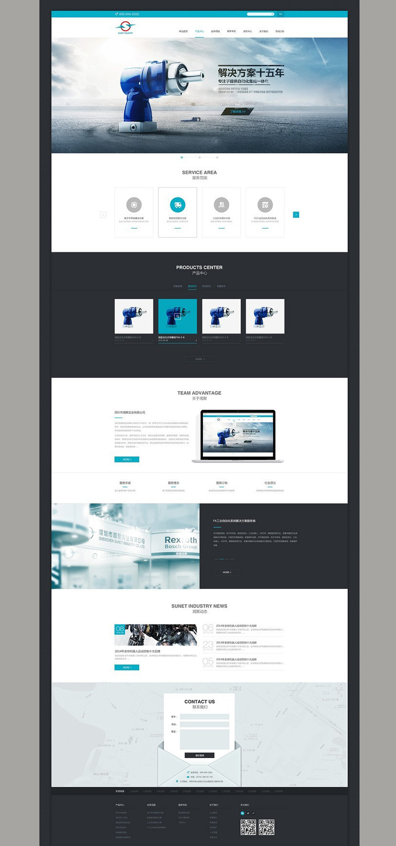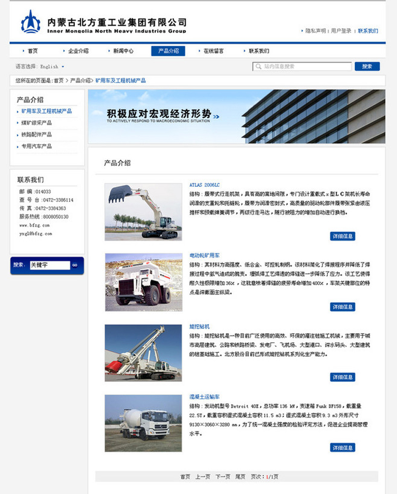 內蒙古機械網頁設計鑒賞,以天藍色為主色調,黑色為輔助顏色。大家也看出來了,這是一個產品列表頁面,網頁模塊設計采用圖文結合的模式。讓網頁更有呼吸感,不是那種只有密密麻麻的文字。