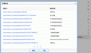 顯示的外鏈按域名聚合在一起。點(diǎn)擊域名會(huì)彈出窗口顯示這個(gè)域名下的鏈接來自什么頁(yè)面以及使用的錨文字。