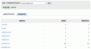 查看競(jìng)爭(zhēng)對(duì)手的外鏈?zhǔn)羌猛嬗钟幸饬x的事。以SEO這個(gè)詞為例,baiduseoguide.com外鏈?zhǔn)?034個(gè),算是少得可憐的。seo.chinaz.com是94742個(gè):