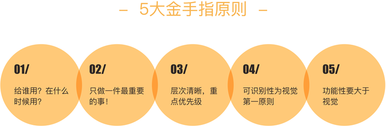 其實做任何事情都有規(guī)律可循,做設計依然,在這里我們就讓這些常見的基礎難題,用金手指抽絲剝繭一一化解,這個方法,我叫它5大金手指原則: