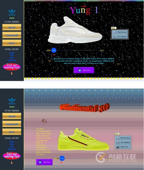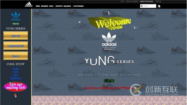 在別家百花爭艷的時候,adidas偏偏反其道而行之,搞出了一個“復(fù)古網(wǎng)站”。