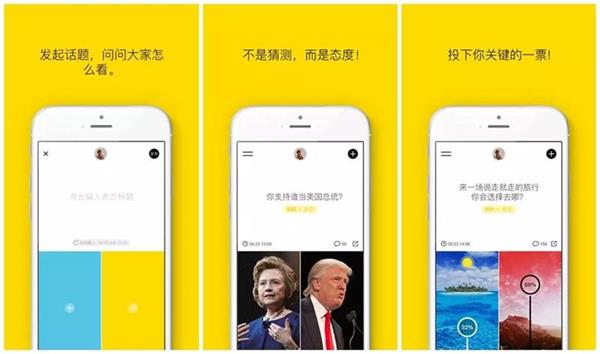 APP 「表態」是我覺得做得比好好的一個案例,很多投票、話題類的 APP 都喜歡用封面圖、大色塊等渲染氣氛,表態卻堅持輕量設計的理念,在標題區進行大塊留白,整體風格都是輕色彩、輕字體、輕背景,反而能更好地吸引用戶注意力。