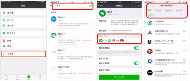 我們最常用的方法就是,打開微信—發現—“小程序”,輸入你想要找的小程序名字即可。
