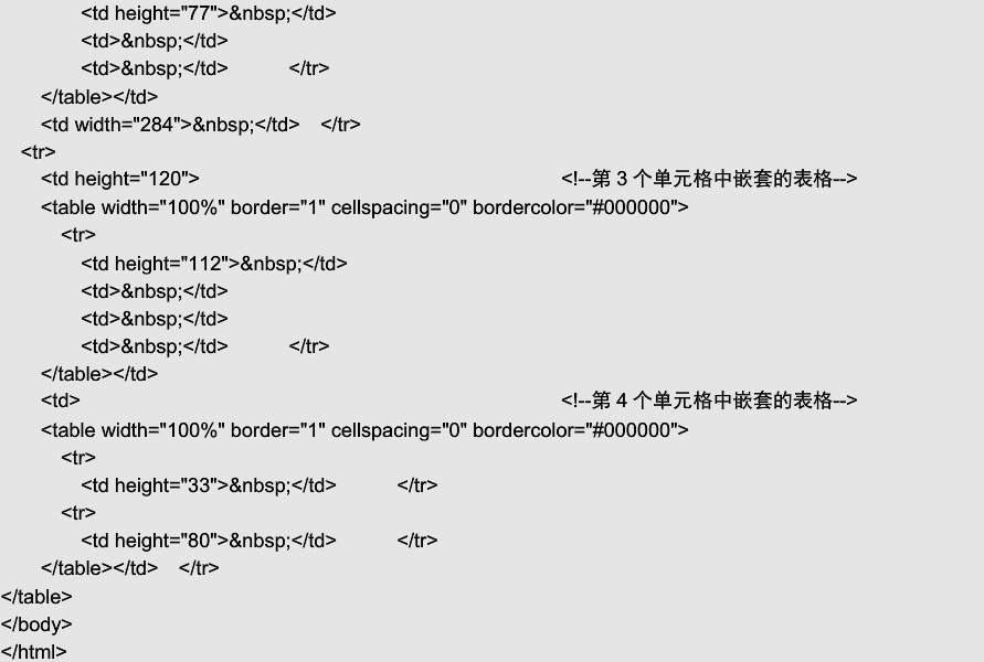 在網(wǎng)頁中使用表格合并與拆分的方法,可以實現(xiàn)網(wǎng)頁布局的靈活排版,但是,用單元格合并或拆分的方法完成網(wǎng)頁的設計以后,就很難再進行行列操作,且不同的單元格互相影響,在更改一個單元格的大小時,同時會對其他單元格造成影響,很難進行靈活控制另一個實現(xiàn)布局排版的方法是用表格的嵌套。表格嵌套就是在表格的單元格中再插入表格,以實現(xiàn)對網(wǎng)頁布局的排版。