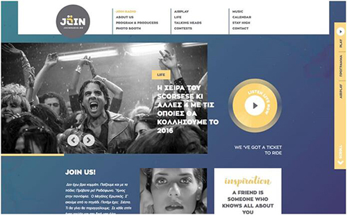 如上圖,JOIN電臺的背景就是一個好的案例。顏色的變化幾乎無法察覺,在設計中與其他用戶界面元素無縫融合。有一個簡單的動畫,通過舒緩的運動使它的色彩變得十分動人。從主頁的左上角移動到右下角遵循從亮到暗的轉變,自然的視覺和閱讀模式進一步鼓勵用戶滾動界面和點擊。