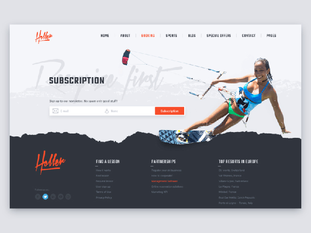 如預(yù)期的那樣,將使用大型滑動(dòng)圖像。在瀏覽網(wǎng)站的顧客中,深色也代表了一種充滿活力和激情的情緒。模型被放置在CTA上面的中心,這是一個(gè)吸引客戶并鼓勵(lì)他們采取期望行動(dòng)的偉大舉動(dòng)。