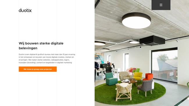 Duotix在整個(gè)設(shè)計(jì)中使用空格來(lái)區(qū)分不同的內(nèi)容塊,并且每個(gè)內(nèi)容塊都有自己的號(hào)召性用語(yǔ)按鈕。 另外,在滾動(dòng)過程中,白色和彩色背景不斷變化,刺激用戶繼續(xù)滾動(dòng)。