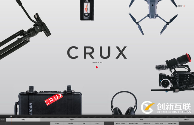癥結(jié)是更為典型的開放布局網(wǎng)站。 主頁(yè)上的各種元素都圍繞頁(yè)面的中心平鋪,當(dāng)整個(gè)布局的滾動(dòng)被重置時(shí),站點(diǎn)導(dǎo)航位于底部,將用戶的位置解釋為視頻剪輯工具中的進(jìn)度條。 想要讓這個(gè)網(wǎng)站有趣而隨意到這個(gè)程度,恐怕只有開放布局