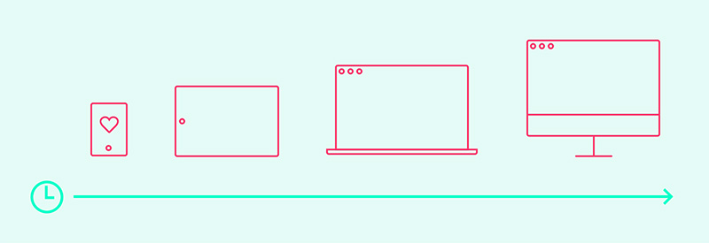 移動端優(yōu)先,這句口號已經喊了好幾年了,真正有遠見卓識的網頁設計師應該很清楚這句話遠不止于口號那么簡單。移動端優(yōu)先必然會牽涉到設計流程,我們應當從小屏幕著手,先設計簡單的布局,然后為其增加復雜度,以其為基礎,為更大的屏幕來進行設計。