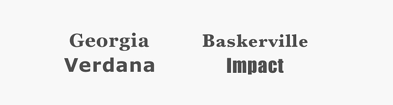 通常情況下,將字體家族的數量限制在最小數量(2個是很多,1個通常就夠了),整個網站堅持使用相同的原則。如果使用多個字體,請確保倆個字體是否和諧。以下面的字體組合為例,Georgia和Verdana的搭配相得益彰,相對比較和諧。相比于右邊Baskerville和Impact則會有明顯的沖突感,非襯線Impact明顯的超過了Baskerville的視覺沖擊力。
