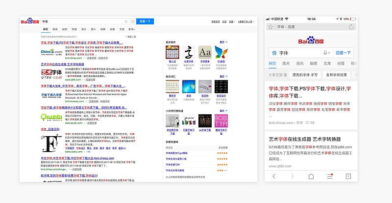 對于移動設備,應該每行30-40個字符(半角),具體顯示多少個字數,與不同分辨率的屏幕、文本寬度和字體大小都會有關系,設計的原則是:保證用戶可以流暢的閱讀文本,文字不宜太小或太大。以iOS(手機)為例,正文文本最小字號不能小于24px,太小了用戶閱讀會難以閱讀。以百度為例,可作為參考。