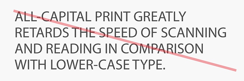 不要所有文本使用大寫字母,強制用戶閱讀大寫字母,首字母大寫,具有特殊含義的縮寫等情況除外,與小寫字母相比,大量的使用大寫字母會嚴重降低用戶的閱讀效率和愉悅感。