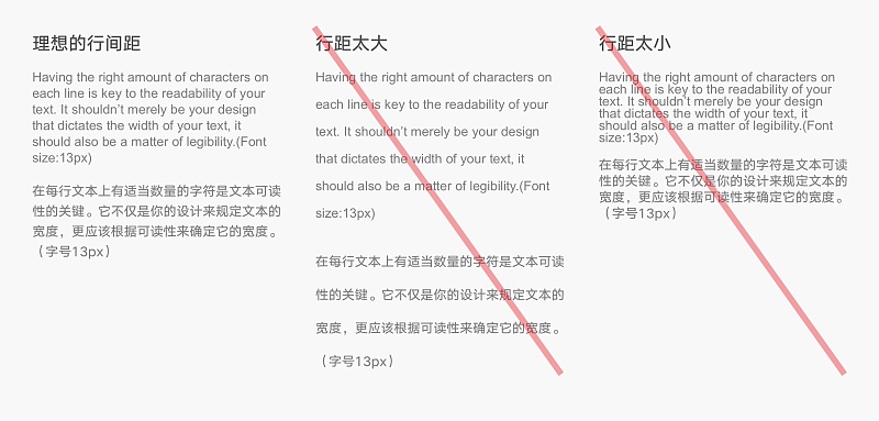 在文字文字排版中,我們又一個特殊的術語,用于表示行與行之間的距離:行間距(或行高)。為了保證文本的可讀性和易讀性,使文本形成線性的閱讀感受,將行間距控制在字體大小的1.5-2倍之間(中文字體)。英文字體推薦使用默認行間距,或根據默認行間距微調。