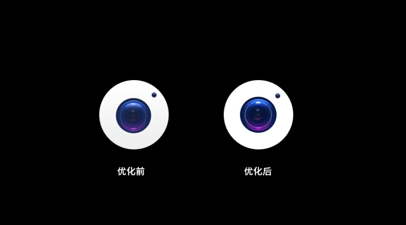 這個圖標存在的問題就是攝像頭與背景對比不夠強,粘在了一起,使整體看起來灰灰的,尤其是在飽和度較高的背景上面,為了提高對比,要么讓攝像頭顏色變淺,要么讓背景顏色變淺,我原則第二個方案,把背景顏色變成白色,如下圖: