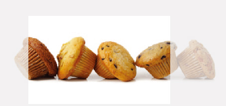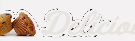 溫馨:在上圖中,白色的版面已經被棕色的圖片所代替,整個版面讓人感覺香氣四溢。在這個設計中,將圖片簡單地作為背景使我們能夠在設計中更加輕松,但其局限是其余的空間比較局促,使到松餅名稱也要重疊在產品上,一般不推薦這樣做,但這次,只能說基本還可接受了。