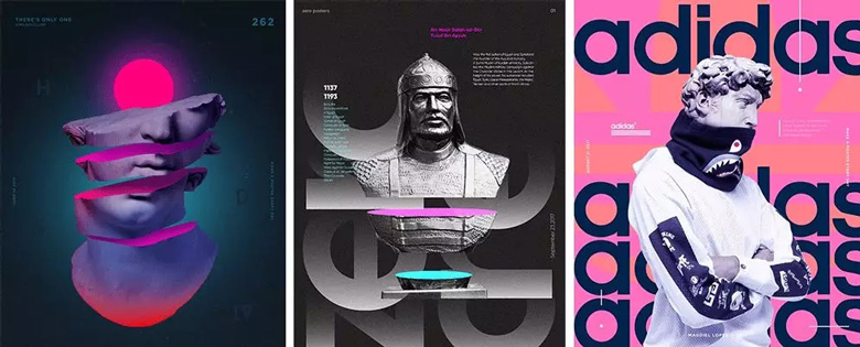 很難解釋這個趨勢到底是怎么出現,但是無論是在海報設計、網頁設計還是其他的平面設計作品當中,越來越多的設計師開始將3D的古代雕像或者類似的東西作為視覺素材來使用。如果你想在設計作品中強調對比,營造真實性、創造性或者傳遞智慧、優雅的感覺,3D的古代雕像都能夠很好的發揮效果。如果你的整個設計采用的極簡主義的風格,那么結合3D的古代雕像元素,能夠讓整體顯得非常的有意思