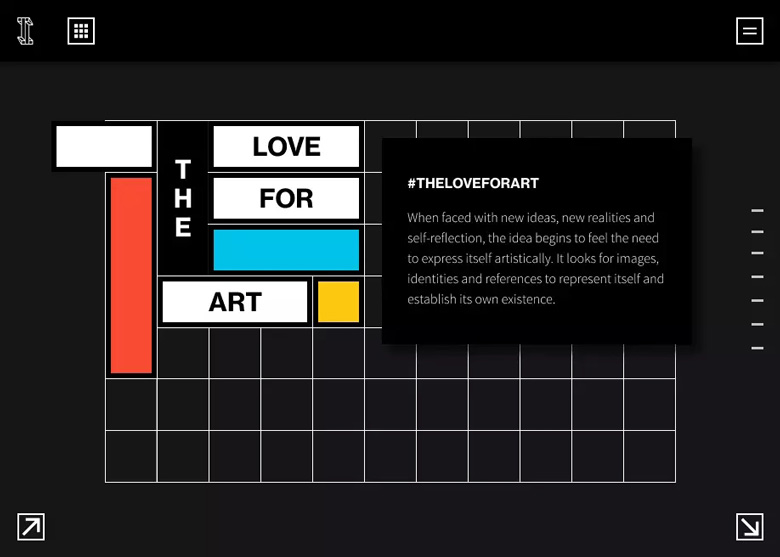 如今 Piet Mondrian 的結構的概念已經在網頁設計中得到了重生,并且被稱為「蒙德里安主義」。這種設計風格更加強調清晰明確的矩形布局和簡約響亮的色彩運用,同時還暗合了響應式設計的精神。