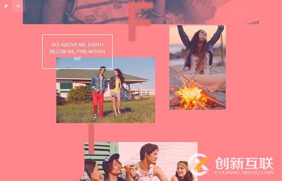Lois Jeans 則采用了另外一種搭配方式,設計師用不同的色彩來凸顯不同的活動和不同的主題,隨著頁面滾動,背景的顏色隨之變化,和前景滾動變化的圖片相搭配。