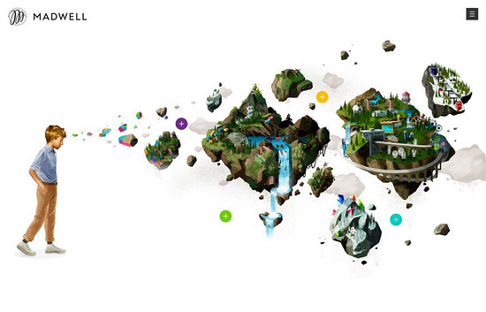 越來越成熟的3D設計讓卡通和接近現實的設計元素的設計成本變得低廉,像上面 Madwell 這個網頁,這些風格接近卡通,但是視覺效果和形式感都極為突出的元素,在視差動效下產生了類似VR的視覺體驗。