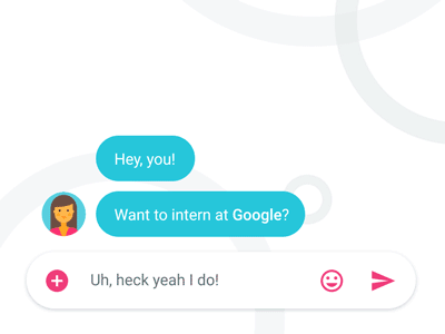 最近在做對話式交互產品的案例搜集工作,在 Dribbble 上看到了一個 Google 用來招聘實習生的作品,是一個類似 Google Allo 的對話界面,效果如下: