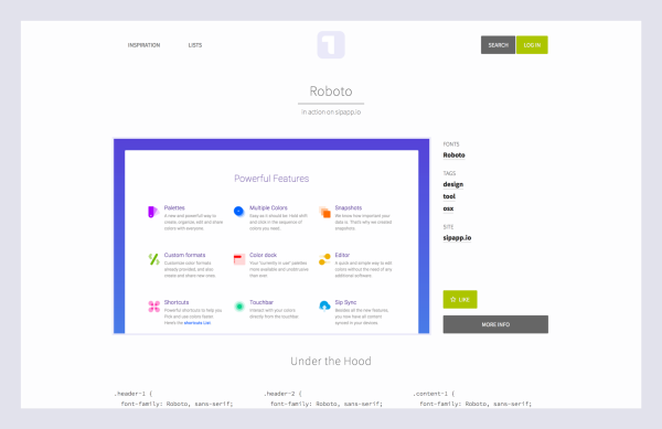 實際網站的可以查看Typ.io. 該網站搜集來自網絡的字體靈感。此外,它還提供了每個靈感樣本底部的CSS字體定義。