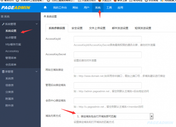 2、進(jìn)入系統(tǒng)>系統(tǒng)設(shè)置,修改域名約束方式,如下圖