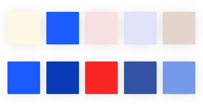 色塊兩排分別利用了不同的形式提高關注點,一排的第二個藍色色塊就利用了色彩飽和度的不同提高了它在這一排中的權重。而第二排第三個紅色,則是通過顏色變化形成了一定的反差,是的紅色塊變得突出。