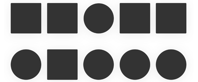 明顯的,一排中獨立的圓形因為形態發生了變化而變得個性,與眾不同。